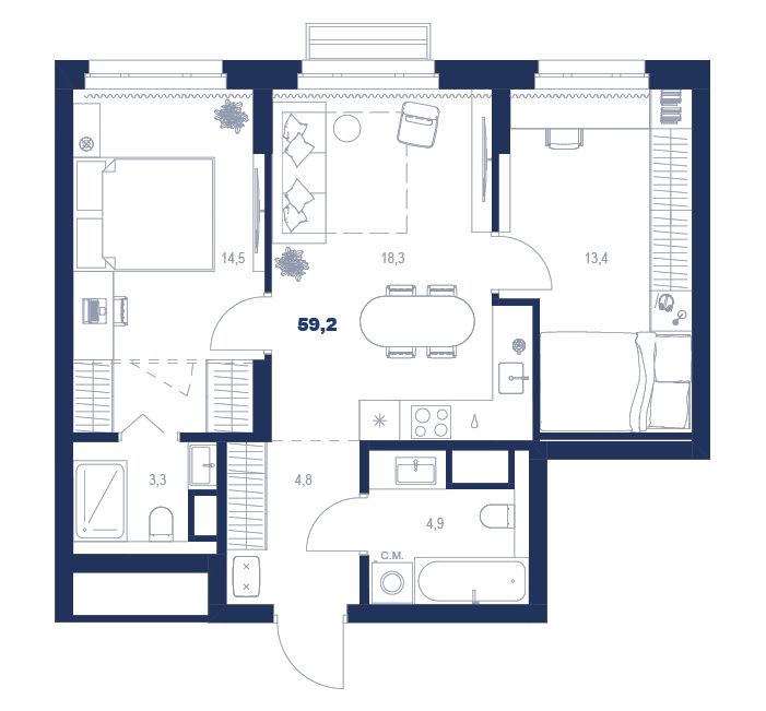 2-комнатная80.1 м2