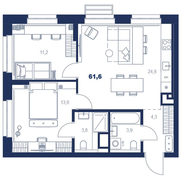 2-комнатная80.1 м2