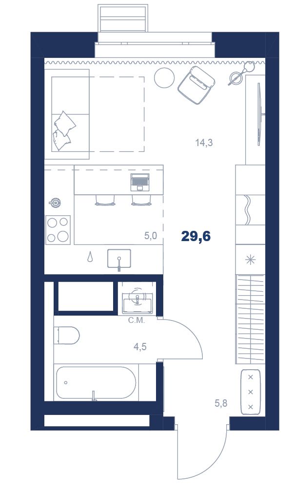 Студия29.6 м2