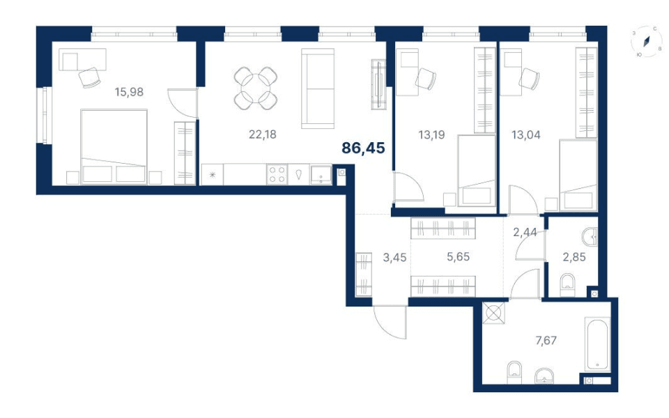 3-комнатная86.45 м2